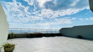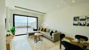 Cet appartement S+1 meublé, en front de mer, est situé au 1 er étage d'une résidence calme et sécurisée avec ascenseur, sur le Boulevard de la Corniche à Nabeul.