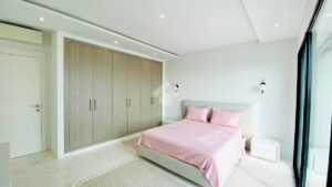 La partie nuit comprend une chambre à coucher, qui bénéficie d'une magnifique vue sur la mer.